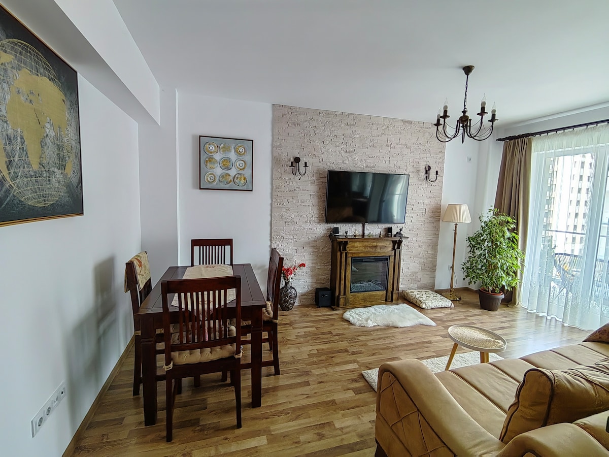 We welcome you to our new charming apartment located in the "youngest" part of Brasov. Fully furnished, a bedroom with a generous king size bed and a cozy window seat, a retro style bathroom with walk-in shower, a living room with bar, fireplace, one comfortable sofa and a fully equipped kitchen, in open space. The apartment is at 5 minutes walk to Coresi Shopping Center and 20 minutes by bus to the Old City Center (4 km distance). The train station is at 15 minutes by bus (2 km).