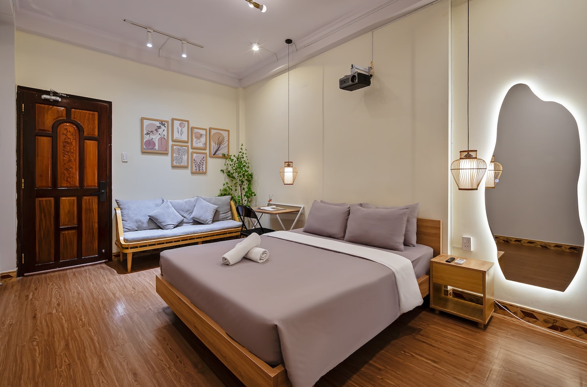 Naš svijetli i prostrani prostor nalazi se u Okrugu 1, srcu HCMC-a. - Lift je dostupan - DIVAN STUDIO sa POTPUNO OPREMLJENOM KUHINJOM i PROZOROM - PRIVATNO KUPATILO - Peškiri su uključeni i mijenjaju se svaki dan besplatno. - BESPLATAN Wi-Fi, svakodnevno čišćenje.