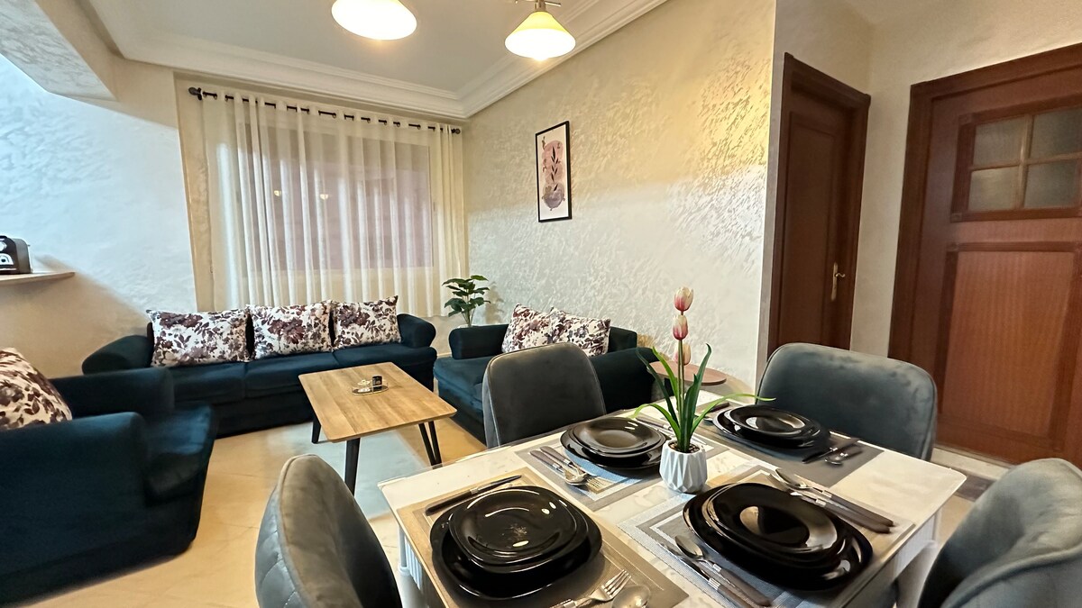 Bienvenue dans notre appartement haut standing, idéalement situé à Tanger 🌇. Notre résidence familiale offre un emplacement privilégié pour explorer la ville. Profitez du confort et du luxe de notre logement avec salon spacieux 🛋️, terrasse ☕, cuisine équipée 🍴, et chambres élégantes 🛌. Nous avons pensé à tout pour rendre votre séjour agréable et mémorable 😊. Réservez maintenant pour des moments inoubliables ! 🎉
