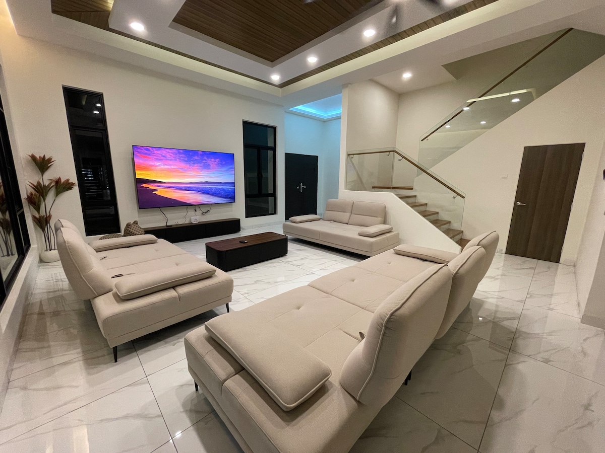 The living area is spacious and ideal for family bonding, movie nights, and relaxed conversations. ✔ 5 Bedrooms ✔ Accommodates up to 11 guests ✔ Bright and airy living area ✔ Clean, hotel-standard bedding ✔ Strong WiFi 🎉 Perfect For: • Chinese New Year gatherings • Wedding guests • Family reunions Large groups will appreciate the generous space — no cramped rooms, everyone stays together comfortably. 📍 Prime Location – Central Muar Everything you need is just a short drive away.