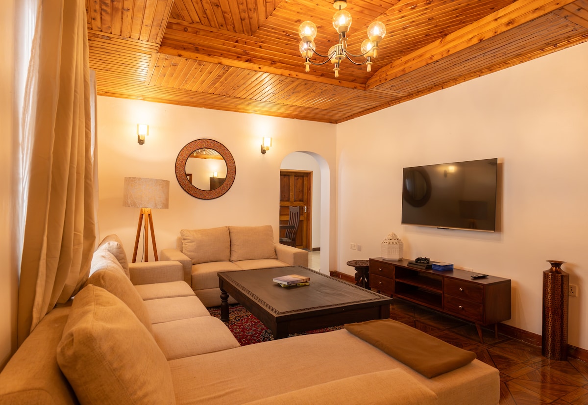 2 bedroom villa with fully equipped kitchen and spacious bathroom. This villa sleeps up to 4 people. A stunning fresh water pool is right in front of the living room and the pristine beach is just few steps away. The property is surrounded by scented Lemon grass(Mchaichai) and many other plants in a secure private residency. All rooms are air conditioned and well ventilated. Cozy outdoor lounge, dinning/BBQ makes a perfect outdoor living. Sunbeds are also available at our private beach.