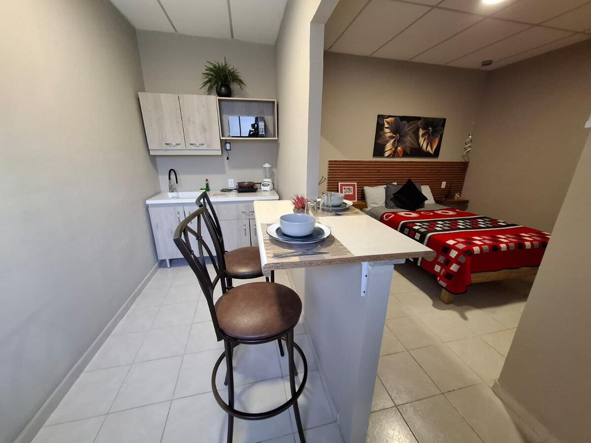 Relájate en este espacio tan tranquilo y elegante ubicado a 1 calle del par vial (la vía principal que conecta toda la Ciudad) a 1 calle del Emblemático Reloj Floral y a solo 5 calles de la zona comercial con más afluencia en la Ciudad, rodeada de comercios útiles y necesarios para hacer de tu estancia una grata experiencia!!