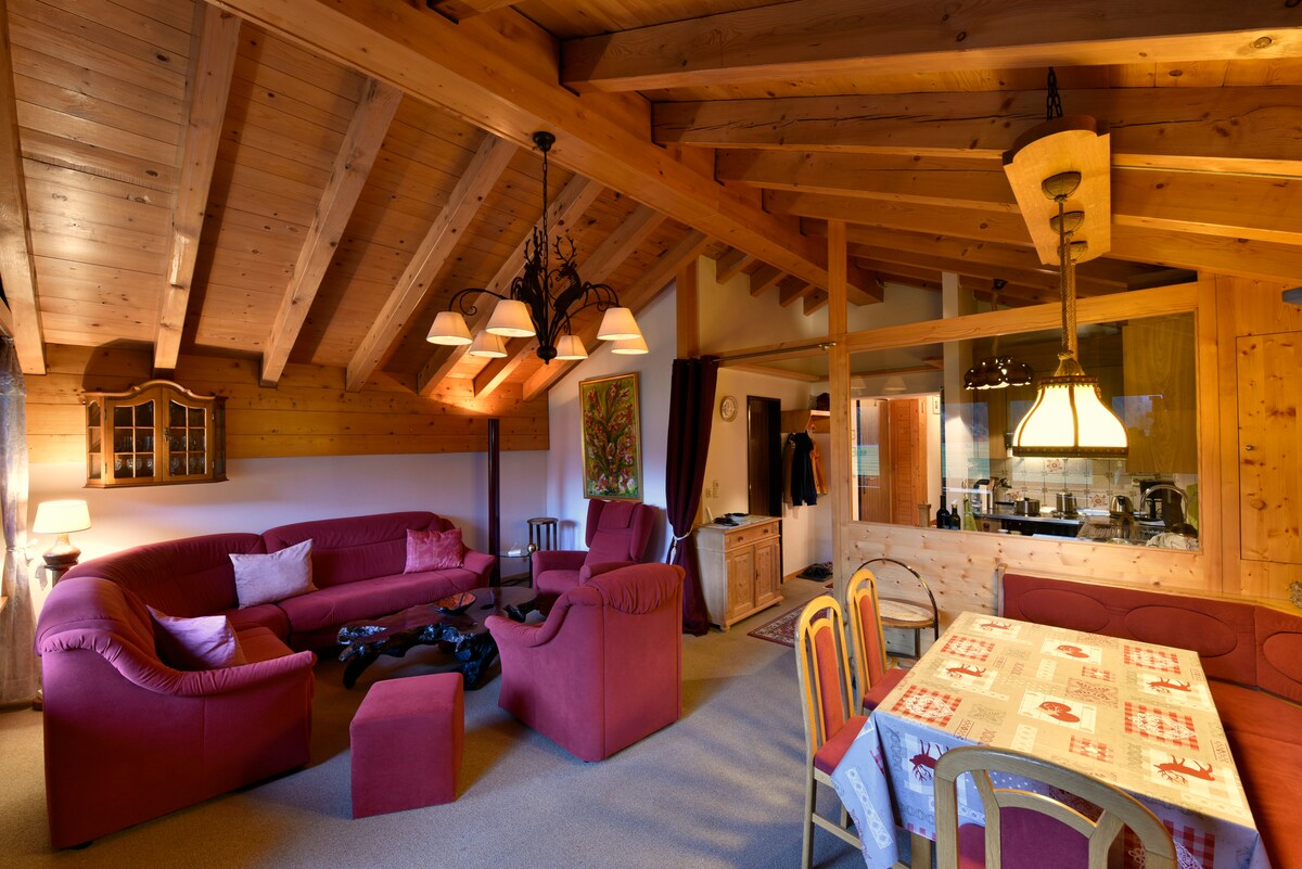 Predivan, prozračan penthaus s 3 spavaće sobe i fantastičnim pogledom na planine. Za 6 odraslih osoba (plus udoban mezanin sa 2 dodatna kreveta pogodna za djecu). U blizini svih lokalnih atrakcija i na laganoj pješačkoj udaljenosti od stanice Tasch. Opustite se sa cijelom porodicom u ovom mirnom stanu sa jednostavnim pristupom Zermatu i Matterhornu.