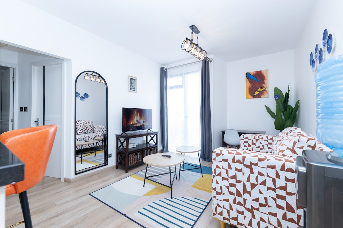 Opustite se u mom mirnom modernom dvosobnom stanu sa 2 kupatila u smještaju Unity Homes u Tatu Sitiju. Uživajte u luksuznim sadržajima kao što su brzi Wi-Fi, bezbjednost non-stop, besplatan parking, teretana u zatvorenom i na otvorenom, bazen, supermarket, supermarket Naivas, dvorišni bistro, košarkaški teren,dječje igralište i fudbalski teren Uživajte u praktičnosti uz vešeraj u jedinici (mašina za pranje i sušenje veša). Zabavljajte se uz dva pametna televizora opremljena Netflix-om, YouTube-om, TV-om uživo i Google-om. Rezervišite svoj spokojan odmor još danas!