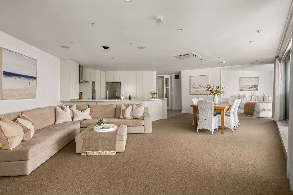 POOL closed until mid December. Wake up to sunrise over the ocean and unwind with sunset views of Tauranga Harbour from this elegant three-bedroom apartment in downtown Mount Maunganui. Enjoy a designer open-plan living space, outdoor lounge with BBQ, and access to the resort’s pool, spa, gym and sauna. Privately managed for a truly five-star stay — steps from cafés, shops and the beach.