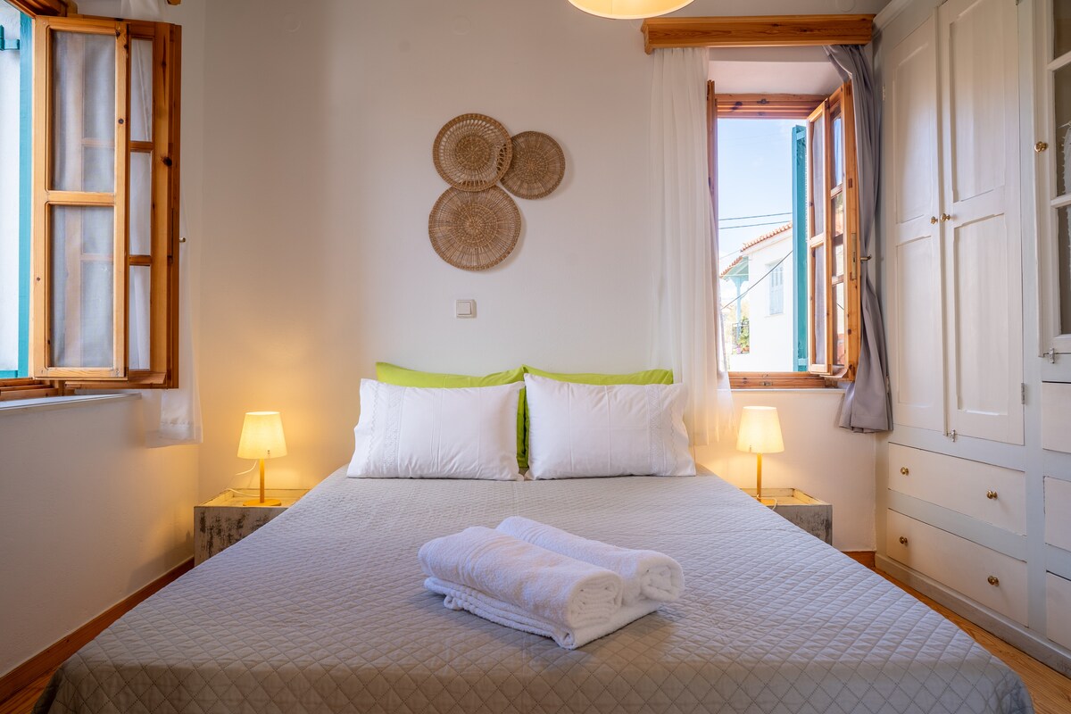 Welcome to our stone house in the traditional village on Lesvos island. Set on seven acres, enjoy breathtaking sea views, orchards, and oak groves. Just a 3-minute drive from pristine beaches and tavernas, tradition with modern comfort. As part of Amazones Eco Land, women’s community, the house offers privacy. Guests can harvest from our organic garden (seasonal) and cook in the outdoor kitchen. We've enhanced shaded outdoor areas and upgraded cooling for a perfect stay in all seasons.