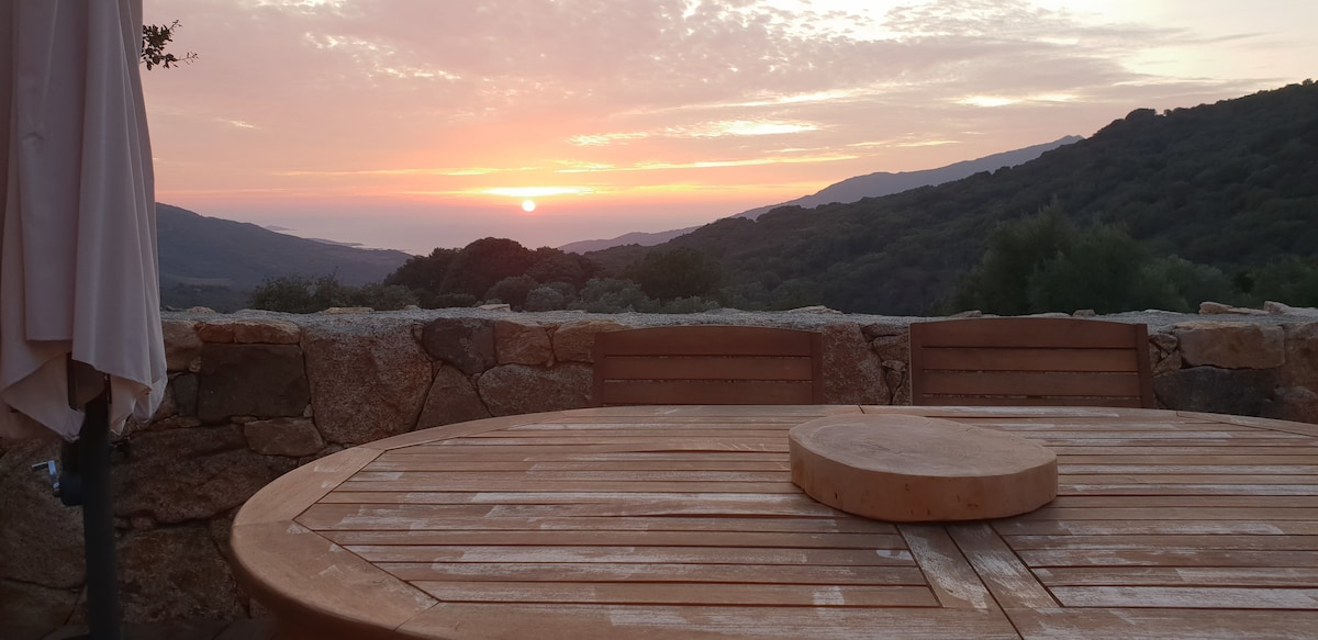 Welcome to La Bergerie, an eco-lodge nestled in the heart of the Corsican mountains. A peaceful retreat where nature, silence and comfort meet. The house sleeps up to 6 guests: two upstairs bedrooms and a bright living room with sofa bed. Fully equipped kitchen, modern bathroom and linen provided. Tea, coffee, chocolate, spices and olive oil await you. In cooler seasons, the wood stove warms cosy mountain evenings.