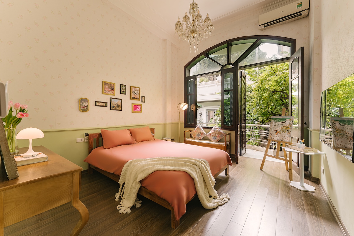 Step into a serene blend of tradition and comfort in this charming room, nestled within a classic villa just a 2-minute stroll from West Lake. Designed for travelers who value peace, beauty, and a sense of history, this room offers a cozy yet spacious retreat inspired by the timeless charm of old Hanoi. This is a space to feel at home, slow down, and enjoy the character of old Hanoi in a setting full of soul.
