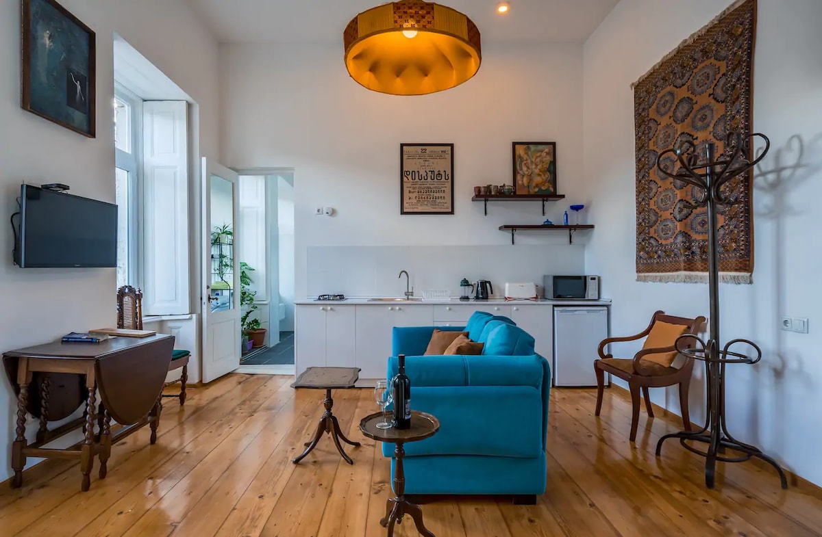 Udoban i čist stan sa svježim renoviranjem u kući iz 1910. godine sa elementima tradicionalnog gruzijskog smještaja. Nalazi se na veoma centralnoj lokaciji, ali u mirnom autentičnom italijanskom dvorištu. Komšije su gostoljubivi Gruzijci. „Italijanska dvorišta” su jedna od glavnih znamenitosti Tbilisija. A vi ćete živjeti u njemu. Stan se nalazi u srcu Starog Tbilisija, 200 metara od Trga slobode i 800 metara od trga Orbeliani. 400 metara do stanice metroa „Trg slobode”.