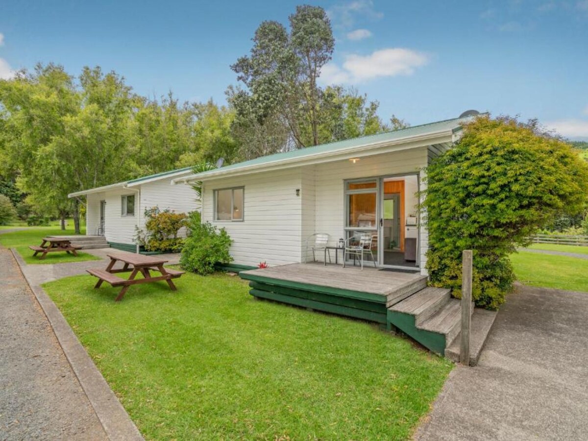Ovaj porodični bungalov ima 62 m2. Savremeni dekor i ambijent koji se izlivaju na terasu u privatnom okruženju grmlja kako biste uživali u gomili ptičjeg svijeta, uključujući kivi i Sjeverno ostrvo Weka. Samostalno se sastoji od dvije spavaće sobe pune veličine, jedna s bračnim krevetom, a druga s dva kompleta kreveta na sprat. Sva posteljina i peškiri su obezbijeđeni. Terasa i prostor za sedenje na otvorenom, salon, grejalica i kauči. Potpuno opremljena kuhinja sa rernom, šporetom, frižiderom, mikrotalasnom rernom, posuđem i priborom za jelo. Kupatilo. Parking za automobile i brodove.