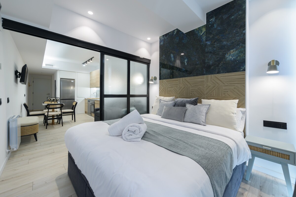 Veličanstven stan od 45 kvadratnih metara u srcu Madrida. Sa spektakularnim dizajnom i dekoracijom, prostranim prostorima i visokim plafonima, stan je opremljen svime što vam je potrebno za boravak u Madridu. Dnevni boravak ima tri balkona s pogledom na ulicu koji pružaju veliku osvijetljenost stanu. Spavaća soba ima sopstveno kupatilo i radni sto. Od stana možete prošetati do skoro svih legendarnih tačaka Madrida.