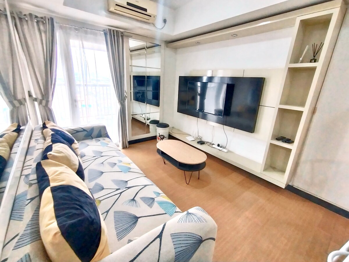 Potpuno opremljen penthaus sa 2 BR u luksuznom ⭐️ stanu sa 5 stanova sa zadivljujućim pogledom na grad sa balkona na vrhu zgrade Miraž, jedini toranj između ostalih u istom bloku sa pogledom na grad, najbliži i direktan pristup super bloku tržnog centra Kota Kasablanka, jednog od najvećih trgovačkih centara u Džakarti sa štandovima sa hranom, supermarketom, igralištem za decu i bioskopom. U blizini CBD-a, 10 minuta do Sudirmana i Kuningana sa kompletnim sadržajima, npr. spoljnim bazenom, đakuzijem, baštom, fitnes centrom, vešom.