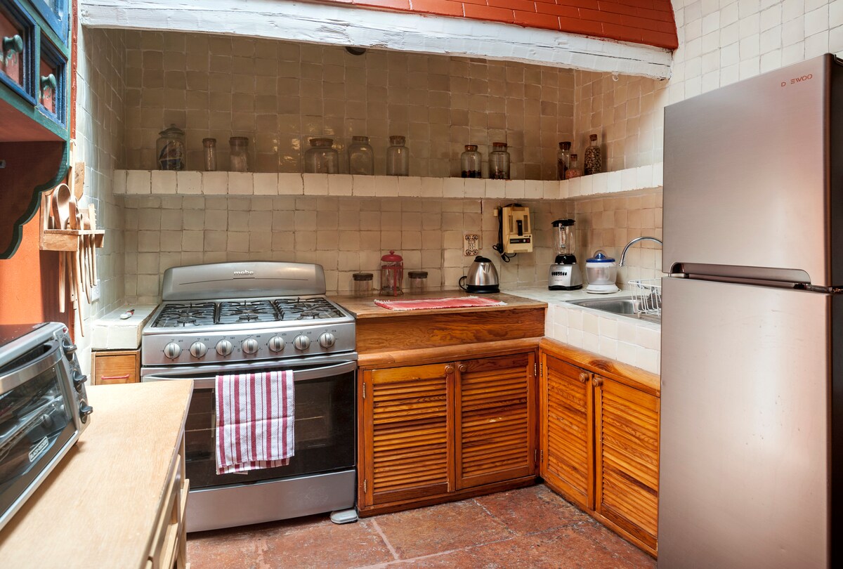 Jedna seoska kućica (sa krevetom u punoj veličini i kaučem na razvlačenje). Ulicu dalje od glavnog trga i pješačka udaljenost do različitih pijaca (hrana i umjetnine, gurmanska i prodavnica vina). Unutrašnji i spoljašnji vrtovi. Sedam blokova od kuće Fride Khalo.