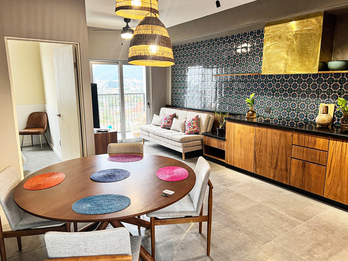 ✨ Experience Monterrey from Above 🌆 Relax in our modern 2BR/2BA apartment in San Pedro with stunning panoramic views. Two queen beds, 2 full bathrooms, fully equipped kitchen, A/C, fast WiFi, washer-dryer, parking & 24/7 security. Perfect for business, medical or leisure trips: minutes from top hospitals, Showcenter, shopping centers and the best restaurants. Ideal for short or long stays, blending the comfort of home with the boutique experience only San Pedro can offer.