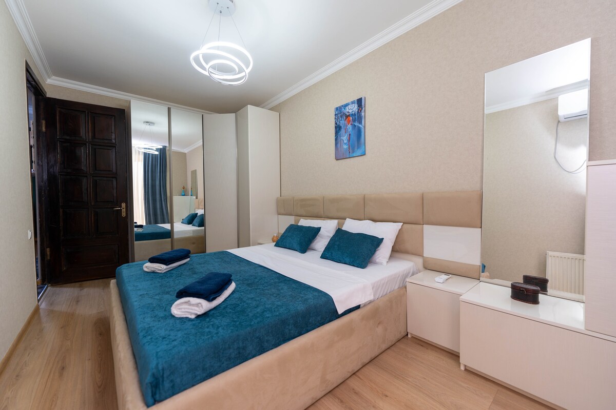 Stan je sa velikom terasom, gdje možete uživati u prelijepim danima. Apartman se nalazi u blizini klinike Imedi. Postoji mnogo restorana, veliki tržni centar, mnogo malih prodavnica i apoteka. Stan se nalazi na posljednjem spratu zgrade i imaćete prelijepu panoramu grada i planina. U stanu postoje sve neophodne stvari za duži ili kraći boravak ❤️