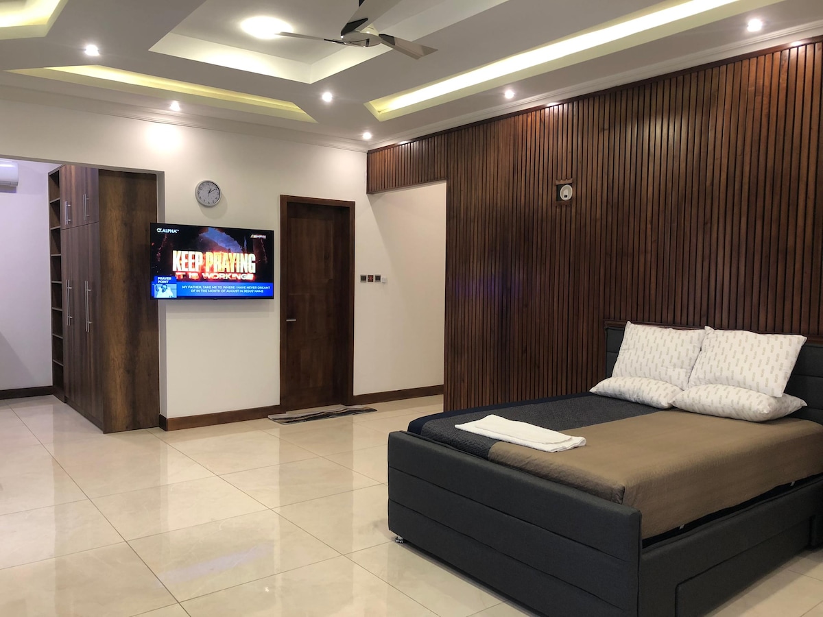 Ova jedinica se nalazi na drugom spratu i može da primi do 6 osoba. Takođe imate ekskluzivnu upotrebu krova sa prostranim pogledom na Tema i Akra. Moja majka koja se nedavno preselila iz sad živi u potkrovlju na spratu, pa očekujte udobnost doma na zahtev. Imamo i posebnog vozača koji vas može odvesti bilo gdje u Gani. Dobro došli u svoj novi dom. Nemojte da vas ugostite prelijepe slike, uzmite tačno ono što vidite na internetu.