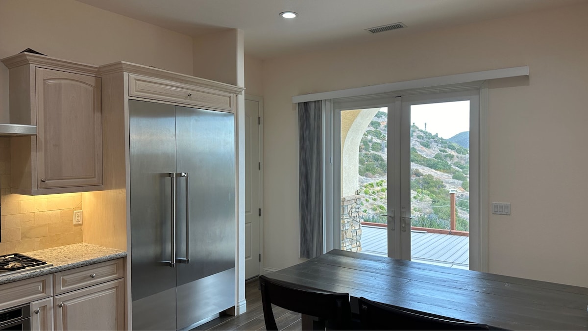 Opustite se u ovom jedinstvenom i mirnom smještaju, smještenom na farmi organskih citrusa na privatnom zemljištu od 27 hektara s pogledom na planine i doline na citruse i avokado. Ova jedinica ima sopstveni privatni ulaz i privatnu terasu sa spoljnim sudoperom, roštiljem i trpezarijom. Unutrašnji dnevni prostor ima oko 960 kvadratnih stopa, a terasa oko 800 kvadratnih stopa. Kuća se napaja solarnim nizom i Teslinim baterijama, tako da nećemo imati nestanak struje čak ni tokom nestanka struje, pod uslovom da se ne koristi mnogo klima-uređaja.