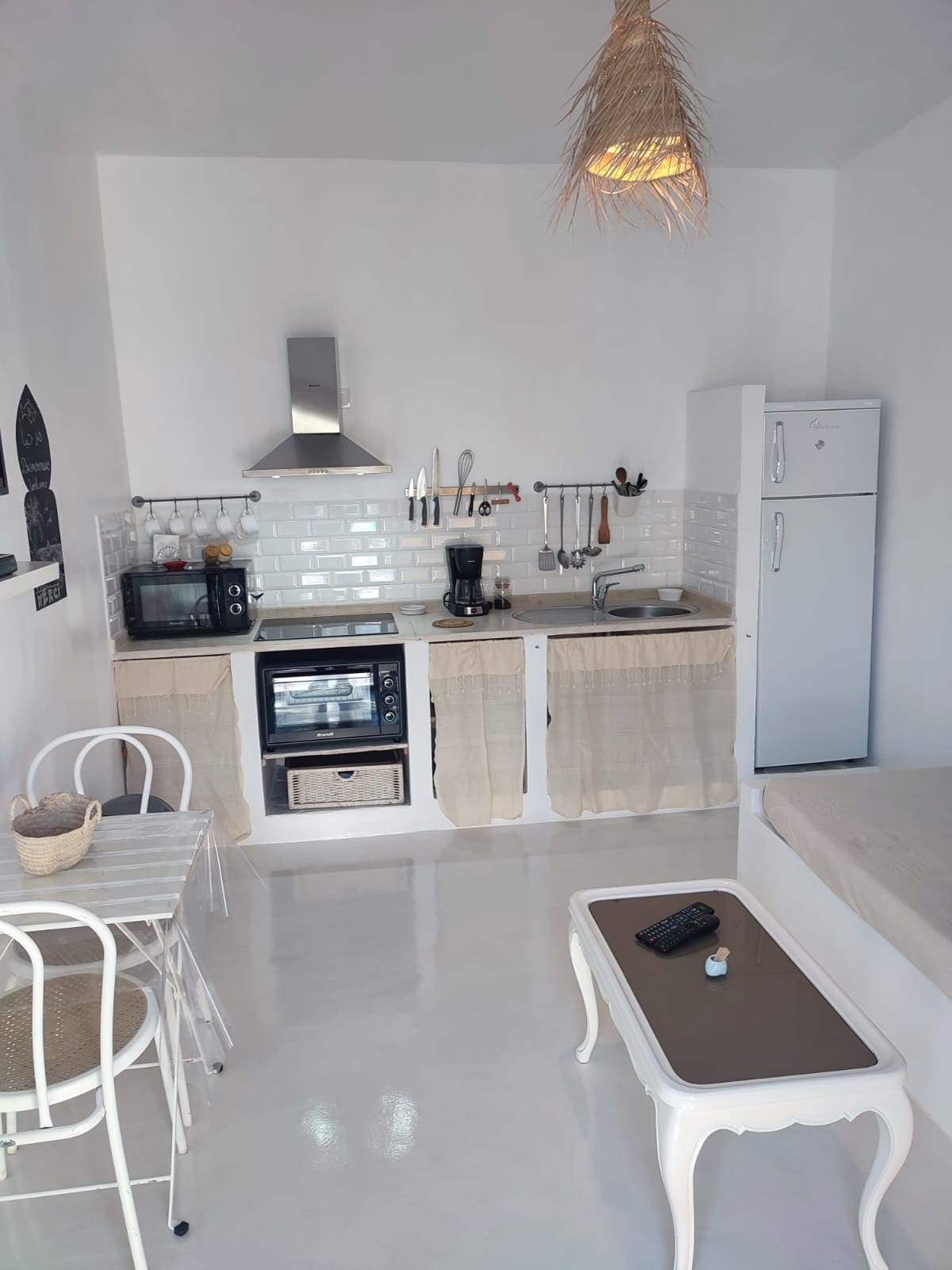 Smješten u objektu sa palmama, maslinama i mediteranskom vegetacijom, studio je u stilu Houch Djerbe. Sa nezavisnim pristupom, sastoji se od spavaće sobe sa 1 bračnim krevetom + 1 garderobe, dnevnog boravka sa 1 kaučem na razvlačenje 80 x 190 cm + TV sa satelitskom televizijom, italijanske tuš-kabine sa WC šoljom i male privatne terase. Idealno je dizajniran za 1 par + 1 dijete. Besplatan pristup svim spoljnim prostorima, bazenu, kolibi i ljetnjoj kuhinji Parking u hladovini.