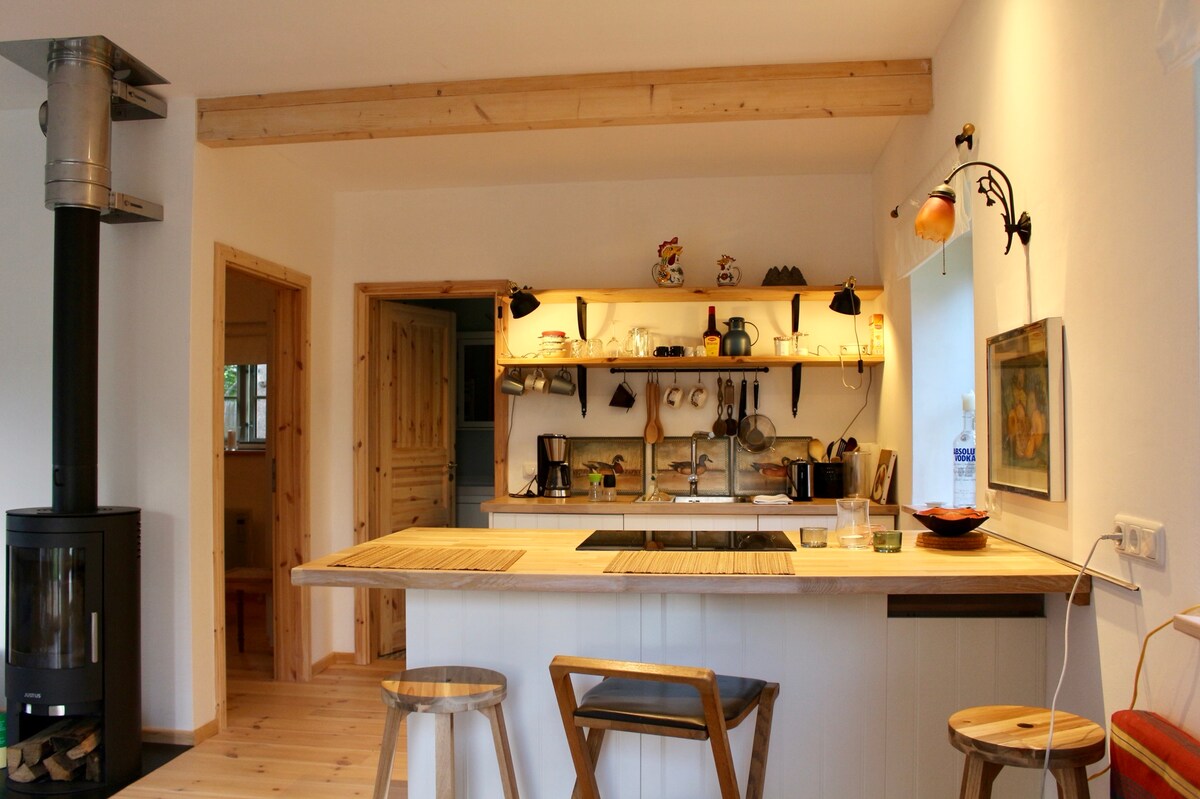 In this cozy accommodation for 2 - 4 people you will certainly feel very comfortable. The 55 sqm will be furnished with many individual details. We are still in the process of renovation, photos of the interior will follow. It is possible to have a completely secluded holiday or to seek encounters with the guests of the 3 glamping tents. I offer weekly hikes, herbal workshops and campfire cooking. If you want, you can garden with me barefoot... (it's an experience) ;-D