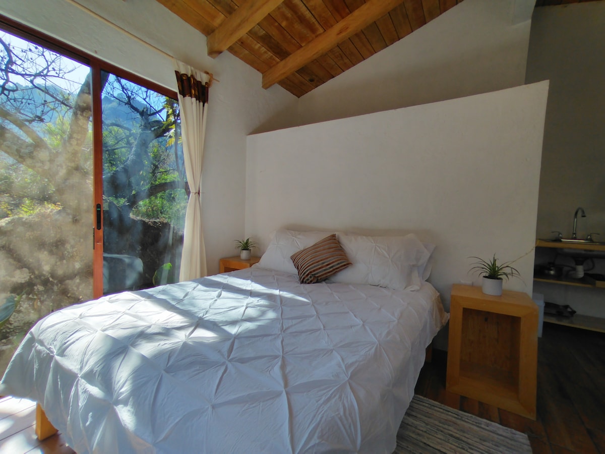 Dobrodošli u Iksaju, luksuzni potkrovlje dizajniran da ponudi udobnost, privatnost i atmosferu dubokog opuštanja usred prirode Tepoztlana. Ovde ćete naći idealno utočište za isključivanje: veliki bračni krevet, privatni đakuzi sa grejanjem (dodatni trošak), opremljenu kuhinju, velike prozore i dve ekskluzivne bašte koje ispunjavaju svaki prostor svetlošću i spokojem. Smešten u mirnom i bezbednom stambenom naselju, na samo 12 minuta od centra grada, možete uživati u njegovoj jedinstvenoj energiji.