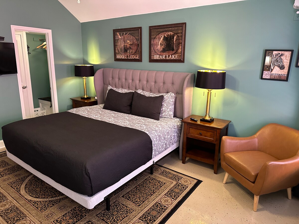 Ovaj profesionalno uređen studio udaljen je nekoliko minuta od najboljih mesta u Nešvilu i samo 2 milje od Brodveja – savršen za koncertne večeri i izlete za parove. Gosti često kažu da je ovo jedan od najčistijih smeštaja u kojima su boravili, sa pažljivo osmišljenim detaljima koji ga čine posebno udobnim. Uživajte u rezervisanom parkingu, jednostavnom samostalnom dolasku, potpuno opremljenoj stanici za kafu, vrhunskim završnim obradama, prostranom tušu i udobnoj kućnoj bazi u blizini svega.