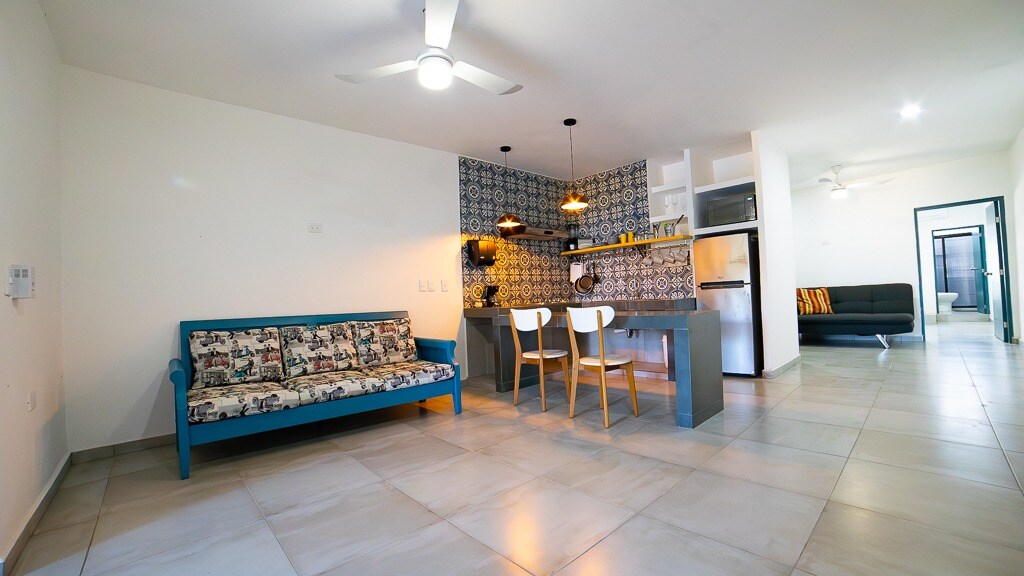 Visiting Mazatlán? Great! We have a superb place. Apartment 3 has what you need: ✔️ First-floor location 🔒 Inside a secure building, accessible by codes 🛏️ Queen bed for 2, max 4 if you rent an inflatable mattress ($300 MXN) 🚽Private Bathroom 🌬️ Minisplit (AC unit) 🥄 Equipped kitchen 📺 Smart TV 🚀 Internet Plus, there is a terrace with a pool, grill, and bar lounge available on the 3rd floor. 5 min. from the Golden Zone (Zona Dorada) and close to restaurants, Soriana, and Walmart.
