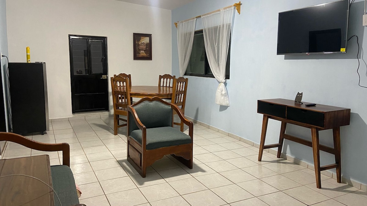 Uživajte u udobnom i mirnom boravku u ovom prostranom stanu. Nalazi se u sigurnom i mirnom području, idealnom za opuštanje. Cijena je označena za 2 osobe ili 1 par (koristite najviše 2 kreveta). Ima 2 spavaće sobe, svaka sa 2 bračna kreveta, a u dnevnoj sobi kauč na razvlačenje. Može da primi do 9 ljudi. Ako se dodaju saputnici, savjetujte ih i pokrijte dodatne troškove od 200 MXN po osobi putem transfera. Bienvenidos!