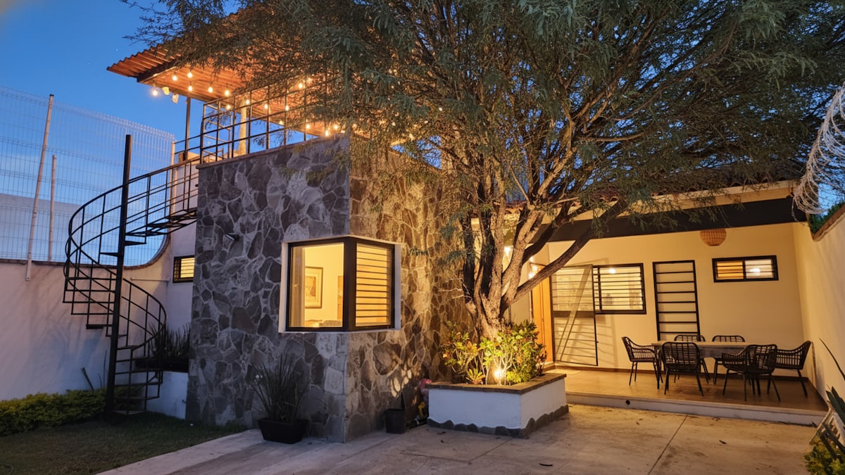 Preciosa y cómoda Casa Loft en un Residencial muy bonito, seguro y tranquilo! Muy cerca del Centro de Tequisquiapan, fácil acceso a lugares de interés de este precioso pueblito mágico! La Alberca climatizada con panel solar justo en frente de la Casa, ofrece una experiencia muy agradable. Con nosotros encontraras un lugar que exhala una paz increíble! • Diseño contemporáneo y espacios luminosos crean un ambiente acogedor para familias y amigos • Cómoda Terraza al frente con mobiliario exterior