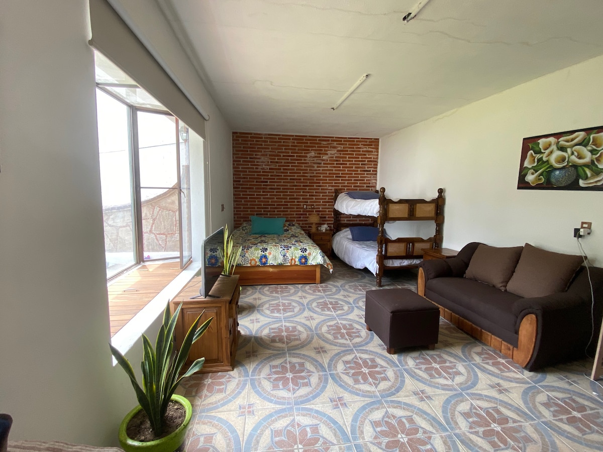 NO ESTAMOS EN EL CENTRO Pequeña pero acogedora suite privada con cocina, baño y estacionamiento exclusivo, elementos básicos para pasar una estancia agradable en Tequisquiapan, dentro de una propiedad ubicada a 1.2 km de la Plaza principal del pueblo y a 4 cuadras de la carretera San Juan del Rio-Xilitla. No es fraccionamiento ni zona residencial, es una colonia tranquila, serás nuestra prioridad! "Ideal para dos personas, Pero en el sofá cama puede quedar un tercer huésped."