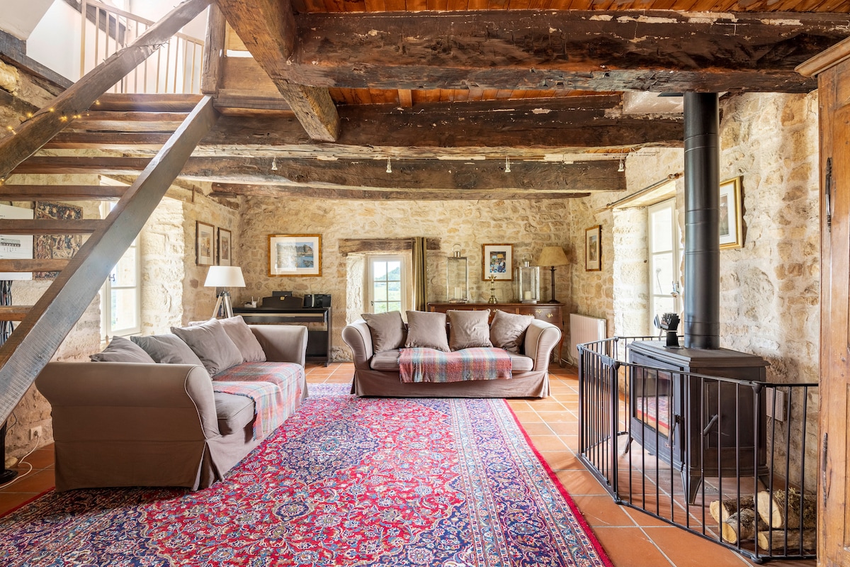 Come for Autumn Winter 2025/6 with a 30% reduction!! (Already applied) A charming farmhouse set in 10 hectares of land, in an enviable position with exceptional views. To be enjoyed at any time of year. Search for orchids in Spring; laze by the (shared) infinity pool in Summer; enjoy roast meats and chestnuts in the fireplace in Autumn or cozy up next to the Christmas tree with family in Winter. Saint Robert, one of ‘Les Plus Beaux Villages des France’, is only a few mins away or 20 min walk.