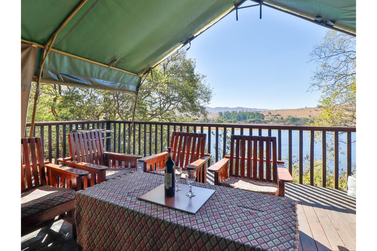 Perched on the lakeside shore, within 200 hectares of wilderness, Rosemere's Themba Tent offers a retreat for four. Experience the peacefulness of the countryside and let nature restore your spirit. • Two bedrooms with queen size beds • Two private bathrooms - indoor and outdoor • Fire pit with seating and braai area • Fully kitted kitchen with stove, oven and smeg appliances • Nature walks • Open water swimming in the lake • Enjoy Zebra, Impala and Blesbok sightings on your doorstep
