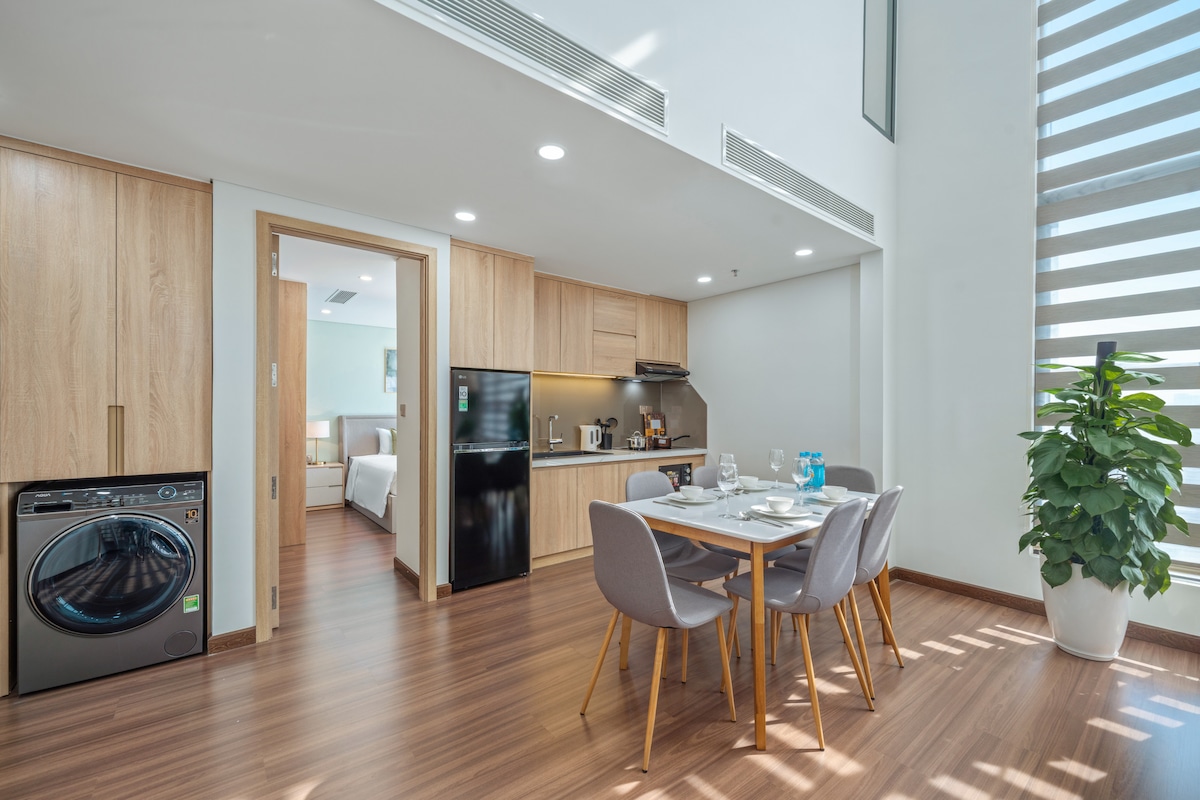 Moderan, elegantan kondominijum od 120 m² na 30. spratu sa zadivljujućim pogledom! 3 spavaće sobe, 4 kreveta - savršeno za porodice ili grupe. Nalazi se u srcu Da Nanga, samo nekoliko minuta od rijeke Han, Zmajevog mosta i parka APEC. Moja plaža Khe udaljena je samo 9 minuta. Uživajte u prostranom životu, svim sadržajima i pristupu zajedničkom bazenu. 🧹 Svakodnevno uklanjanje smeća i zamena peškira na zahtev ★ Panoramski pogledi | Centralna lokacija | Pristup bazenu ✈️ Besplatan prevoz sa aerodroma za boravke od 3 noćenja.