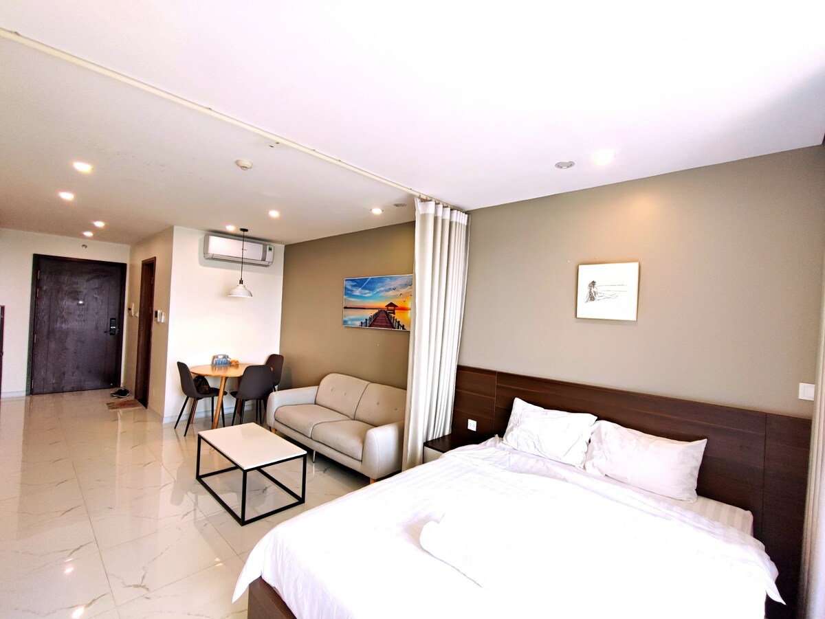 1BDR - 1 Bath 40m2 Luxury apartment on the 38th floor C5 building Vincom D'Capitale 119 Trần duy hưng street, Trung hòa area. 1 BEDROOMS: 1 queen bed with soft high quality mattresses 1 BATHROOMS : Fully equipped KITCHEN: fridge, microwave, electric kettle, pots, pans, hot pot cooker, … LIVING ROOM: comfy sofabed, 1 balconies from the 38th floor, water dispenser; WASHING MACHINE The building near by BigC supermarket, ATM, cinema, kid playground, ...