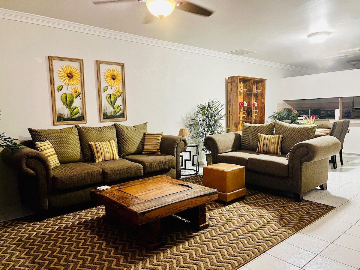 Bolje je na Bahamima! Nedavno renoviran stan u našem domu. Jedna spavaća soba, jedno privatno kupatilo, čajna kuhinja, dnevni boravak i kauč na razvlačenje. Smješten u mirnoj četvrti, okružen bujnim zelenilom nedaleko od centra Nasaua, ambasada, bolnica i Rajskog ostrva. Jutarnja kafa na terasi pružiće vam odmor koji ste tražili! Dođite i opustite se u ovom mirnom i elegantnom prostoru. Minimalni boravak je 2 noćenja. Prvo se raspitajte za boravke od 1 noćenja:-)