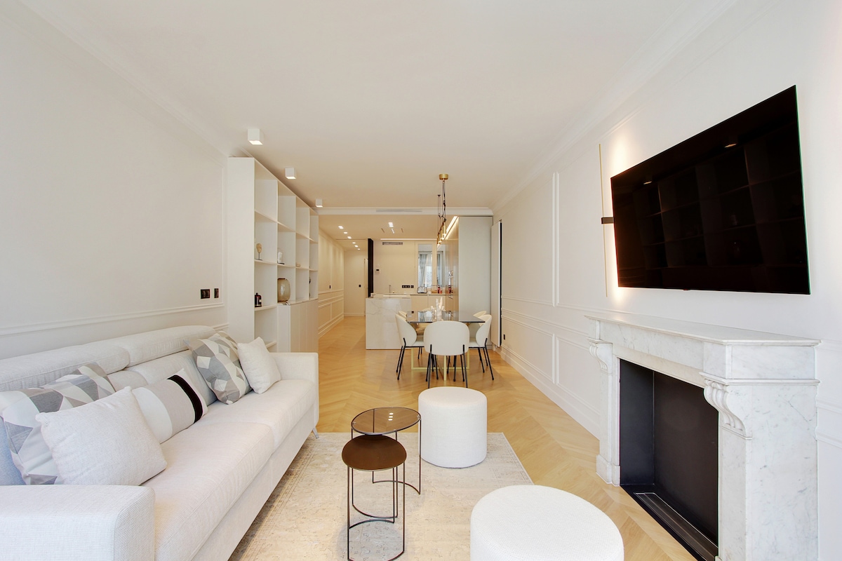 Discover this magnificent 90m² air-conditioned apartment, designed like a hotel suite and boasting a beautiful 25m² private terrace in the heart of Paris's 8th arrondissement. Completely renovated by an architect, it is located on the 5th floor (with elevator) of a traditional building with excellent security. It's the ideal place for a memorable stay in the capital.
