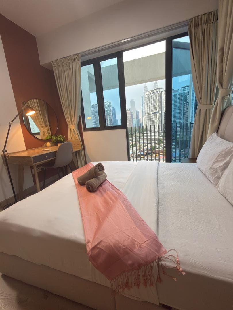 Dobro došli u naš luksuzni jednosobni stan u srcu Kuala Lumpura, gdje se moderna udobnost susreće s tradicionalnim šarmom. Savršen za poslovne putnike i one koji putuju u slobodno vrijeme, ovaj prostrani stan može da primi do 4 gosta. Uživajte u zadivljujućem pogledu na KL toranj iz naše udobne spavaće sobe i potpuno opremljene kuhinje. Na centralnoj lokaciji, bićete u blizini tržnog centra, restorana i mjesta za zabavu. Doživite živopisan gradski život dok se opuštate u elegantnoj udobnosti. Idealna baza za vašu posjetu Kuala Lumpuru.