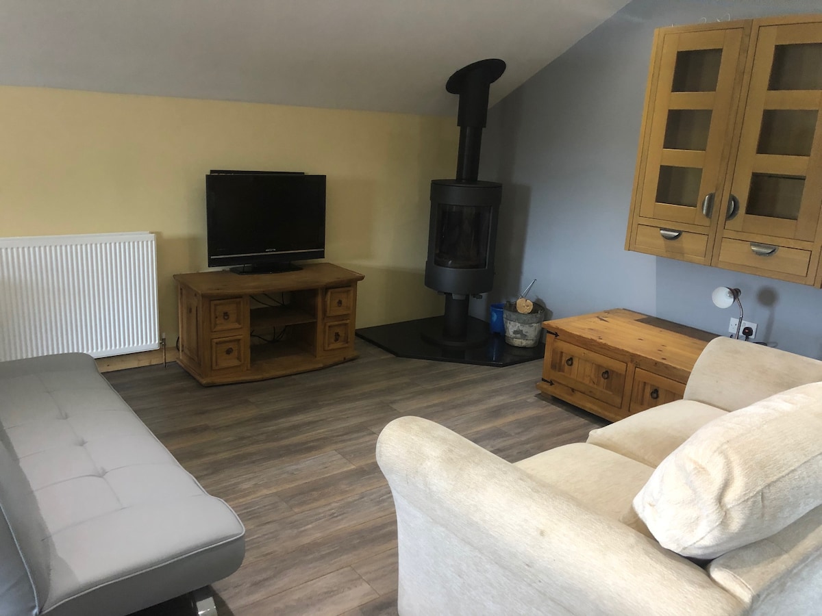 Udobna seoska brvnara sa prelepim panoramskim pogledom na brežuljke Antrim sa spavaćom sobom u daljini. Burou je luksuzna brvnara u prizemlju sa ekskluzivnom upotrebom privatne bašte, unutrašnjeg dvorišta i hidromasažne kade. Stan je udaljen 30 minuta vožnje od zadivljujućih atrakcija na severnoj obali i 45 minuta vožnje od Belfasta. Stan se nalazi 50 m od naše kuće, tako da smo u blizini da učinimo vaš boravak prijatnim.