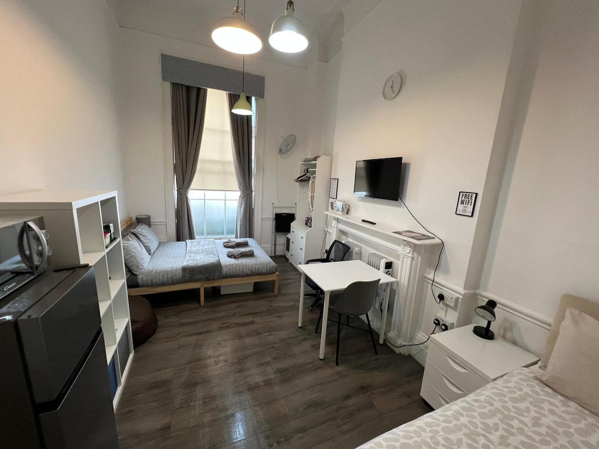 Opustite se u ovom jedinstvenom i mirnom smještaju. Potpuno novi studio, moderan i minimalistički uređen. Vrhunsko područje u centru Londona! Savršeno za turistička i poslovna putovanja. (SAMOSTALNI BORAVCI). Obezbeđen je jedan set peškira i jedan set posteljine. Dostupno i za 15 dana, 1 mjesec ili dugoročno ako se to zatraži. Slobodno mi pošaljite poruku čak i ako vaši datumi nisu dostupni u kalendaru. Jedva čekam da vas ugostim!