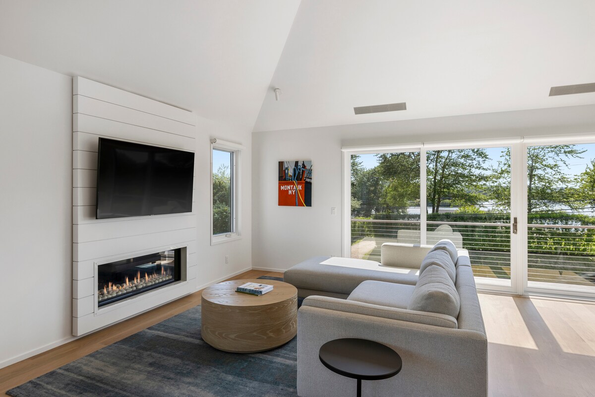 Moderno utočište u Montauku sa šporetom na drva pored luke