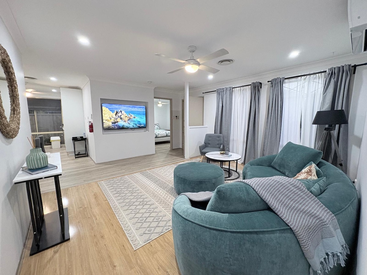 Ovo je gostinjska kuća sa dvije spavaće sobe i bračnim krevetom u svakoj sobi. Sve sobe imaju ventilatore i televizore. Postoji parking na ulici i nalazi se na kraju slijepe ulice. Do autobuske stanice, željezničke stanice, paba, parkova i prodavnica možete doći peške. Kratka vožnja do zooloških vrtova i trkačke staze Eastern Creek.