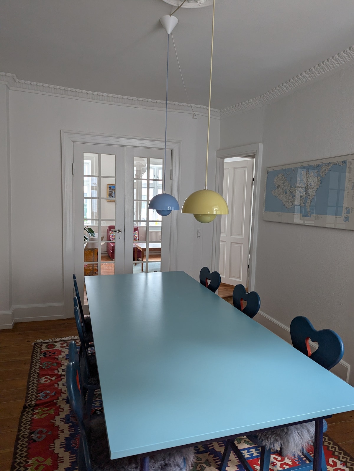 Unique and magnificent private apartment in an unbeatable location at the heart of Inner Copenhagens middle age area. Your own “town house” with a private entrance from a quit sidestreet. A high-end luxury spread over 140 sqm, you stay in a fusion Art Gallery luxury apartment Design furniture, hand built kitchen, wooden floors. high ceilings, contemp. art. Historic estate built in 1789 once a theater This place is also perfect for business meetings / work stays of longer or shorter periods