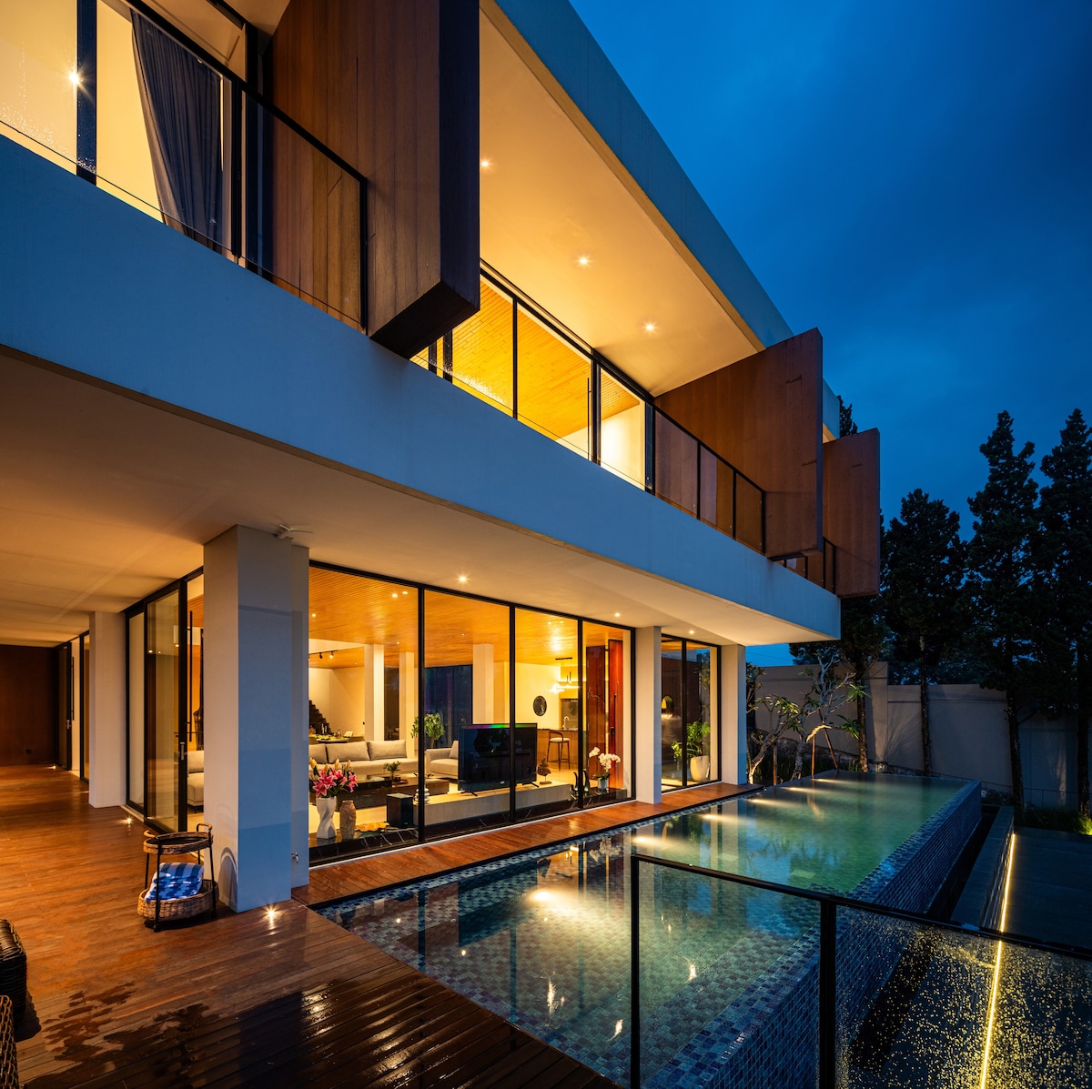 Kuća sa modernim minimalističkim dekorom ima mnogo prirodnog osvetljenja. Kuća se nalazi na uglu i okružena je prelepim pejzažima, što je čini idealnom za snimanje Ima 2 prednja i zadnja vrta koji se mogu koristiti za roštilj. 3 balkona na gornjem spratu nude atraktivan pogled ujutru i uveče NETFLIX je spreman Tu je projektor opremljen kućnim bioskopom 5.1 i ekranom od 120 inča za uživanje u omiljenim filmovima.