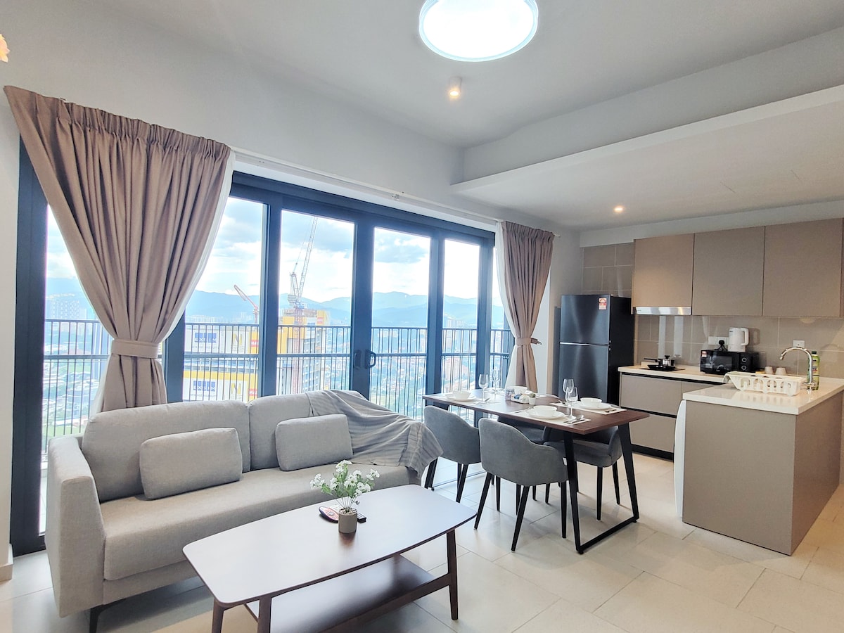 Boravite u elegantnom domu inspirisanom galerijom, sa 2 spavaće sobe i 2 kupatila, u rezidenciji Royce, KLCC. Prozori od poda do plafona uokviruju horizont i razglednicu sa pogledom na kule bliznakinje Petronas; izađite na privatni balkon za uživanje u zalasku sunca. Uključuje kompletnu kuhinju i mašinu za pranje i sušenje veša, udobne krevete, brz Wi-Fi i radni prostor. Napravljen za porodice, parove ili duže boravke. Ne zaboravite da isprobate bazen sa pogledom na grad i teretanu. Odlična lokacija u blizini popularnih mesta u Kuala Lumpuru. Upravlja La Gente – čista, dosljedna i brza podrška