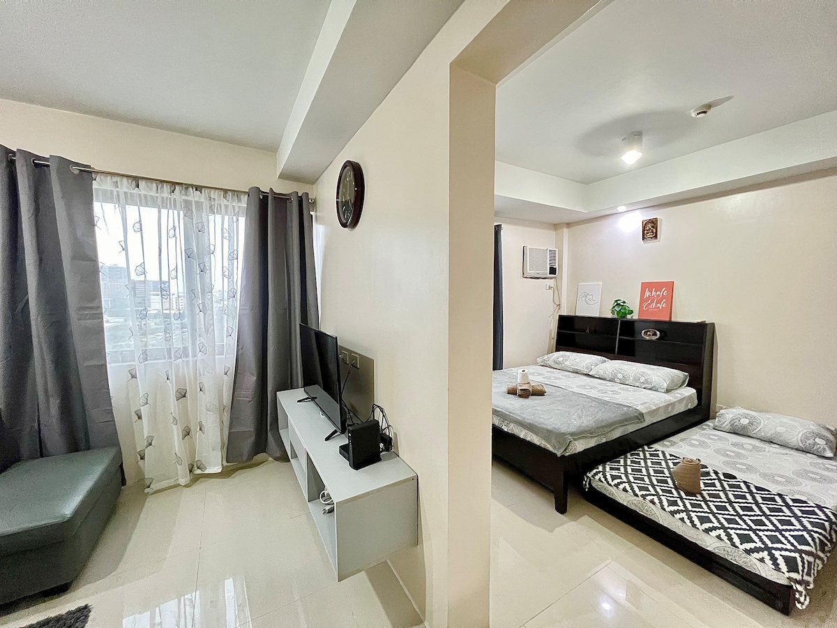 Discover the perfect studio unit to stay that not only is near the malls, but also spacious, accessible, and incredibly affordable. Unit Amenities: - Airconditioning unit - Wifi - Smart TV w/ Cignal cable - Shower heater - City, harbour & mountain view - Microwave oven - Refrigerator - Electric Kettle - Bath towel, shampoo, body wash, toilet paper - Double bed with beddings and pillows *No cooking essentials Check-in & Check-out Time: - Check-in 3:00PM - Check-out 12:00PM