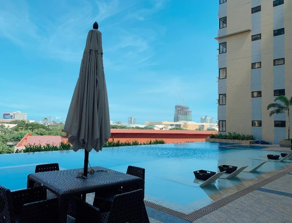 Relax in our beautiful & more spacious than usual corner studio that comes with a balcony. Our place is perfect for tourists & business travelers who wants to be in a safe, central & convenient location- Ayala Mall is just a 6 min. walk or 2 min. car ride with lots of cafes, restaurants, groceries, shops, etc. There are banks, bakeries & convenience stores nearby too. If you want to have a staycation, you can lounge at our scenic rooftop infinity pool with the best 360 view of Cebu.