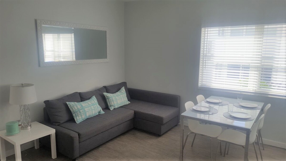 Prekrasan jednosoban stan koji se nalazi u istorijskom području parka Kolins. Ovaj stan je potpuno preuređen i nadograđen i nalazi se u centru grada u tihom i stambenom području Majami Biča. Ukusno je dizajniran i udobno složen sa svime što bi vam moglo zatrebati. Stanica Citibike koja se nalazi ispred zgrade. Kongresni centar je prekoputa, a plaža je udaljena nekoliko minuta hoda. Do mnogih restorana, prodavnica i apoteka stiže se peške peške koje se otvaraju non-stop.