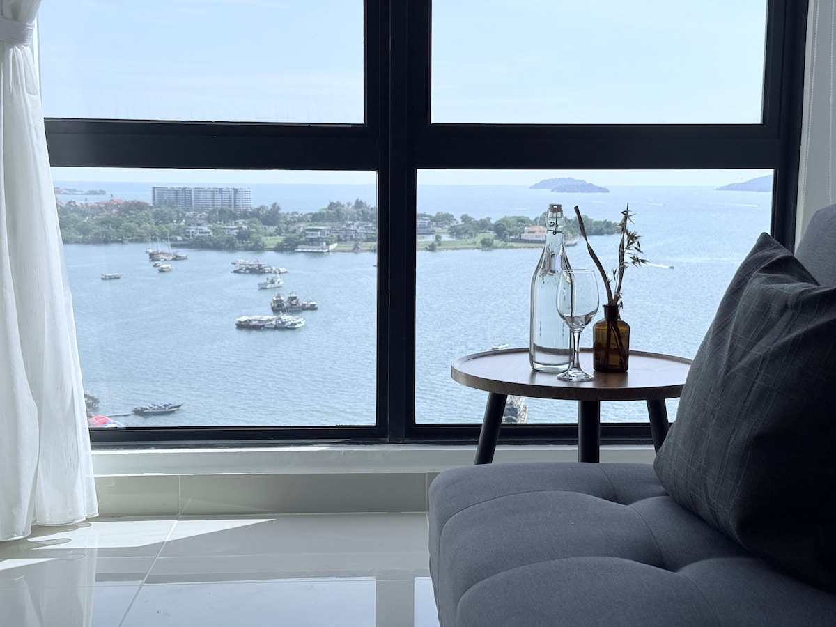 High-floor unit at The Shore in the heart of Kota Kinabalu, offering beautiful sea views from your private balcony. On clear days,enjoy lovely sunset views and a charming photo spot. Walking distance to Gaya Street,Jesselton Point (island hopping), Suria Sabah Mall, local markets and the night market. It is convenient for exploring the city. Clean,comfortable and equipped with WiFi, air-conditioning and hot shower. High demand during weekends and peak seasons. Book early to secure your dates.
