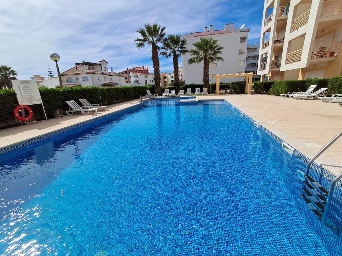 Prekrasan i opuštajući stan s pogledom na baštu u privatnom kondominijumu. Potpuno opremljen, 65" SmartTV, kablovska TV, Wi-Fi, spoljni bazen, teniski teren i privatni parking. 5 minuta hoda do plaže ili do ulice Oura. 15-20 minuta hoda od plaže do starog centra Albufeire.