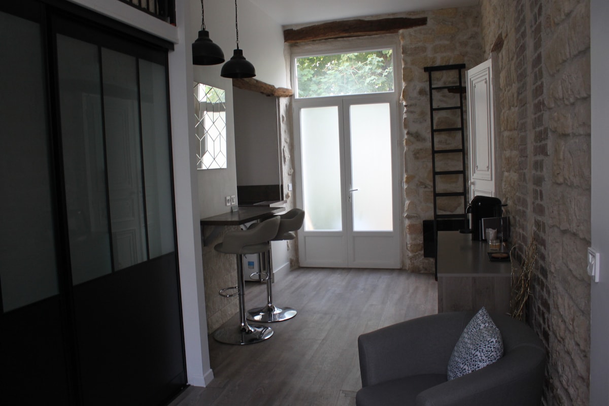 U srcu ulice Rueil-Malmaison, ovaj dupleks površine 38 m², u blizini prodavnica, spaja mir i udobnost. Idealno za parove ili poslovni boravak. Nudi spavaću sobu s bračnim krevetom, opremljenu kuhinju, udoban dnevni boravak s TV-om, brzi Wi-Fi, kutak za čitanje, društvene igre, kupatilo s tušem i odvojeni toalet. Želim vam dobrodošlicu u ovo diskretno okruženje sa izgledom odvojene kuće, sa pažljivom dekoracijom gdje se računa svaki detalj. Smještaj dizajniran za miran i topao boravak ✨