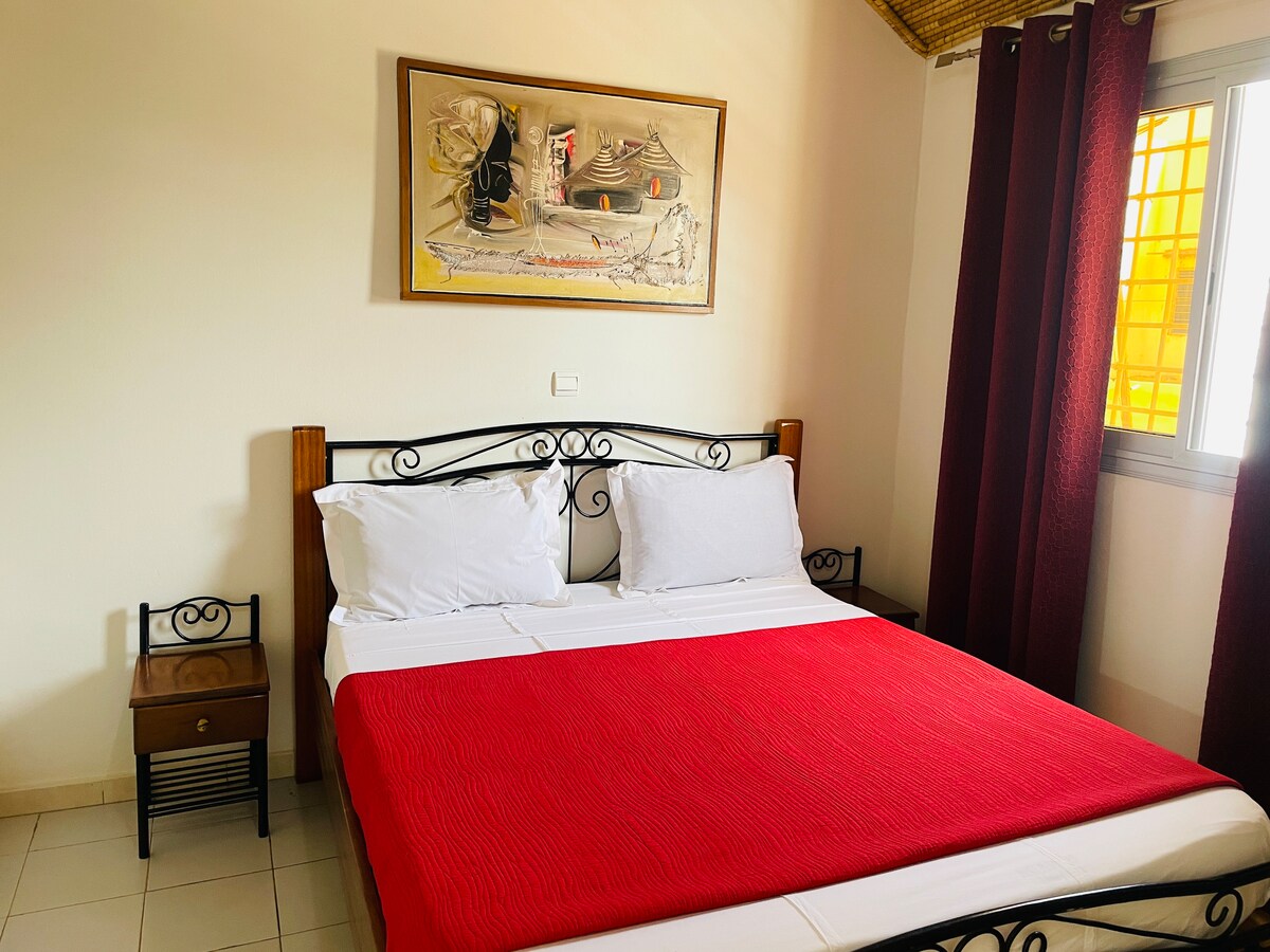 Otkrijte autentičnost tradicionalne kolibe u kojoj se šarm lokalnih materijala spaja sa svim modernim udobnostima. Smješten u zelenom okruženju, okružen voćkama, La Case Rouge je mjesto osmišljeno da pruži mir i spokoj. Bilo da se želite zaustaviti nakon dugog putovanja ili produženog boravka, prepustite se ovom utočištu mira i uronite u prijatnu i autentičnu atmosferu Senegala.